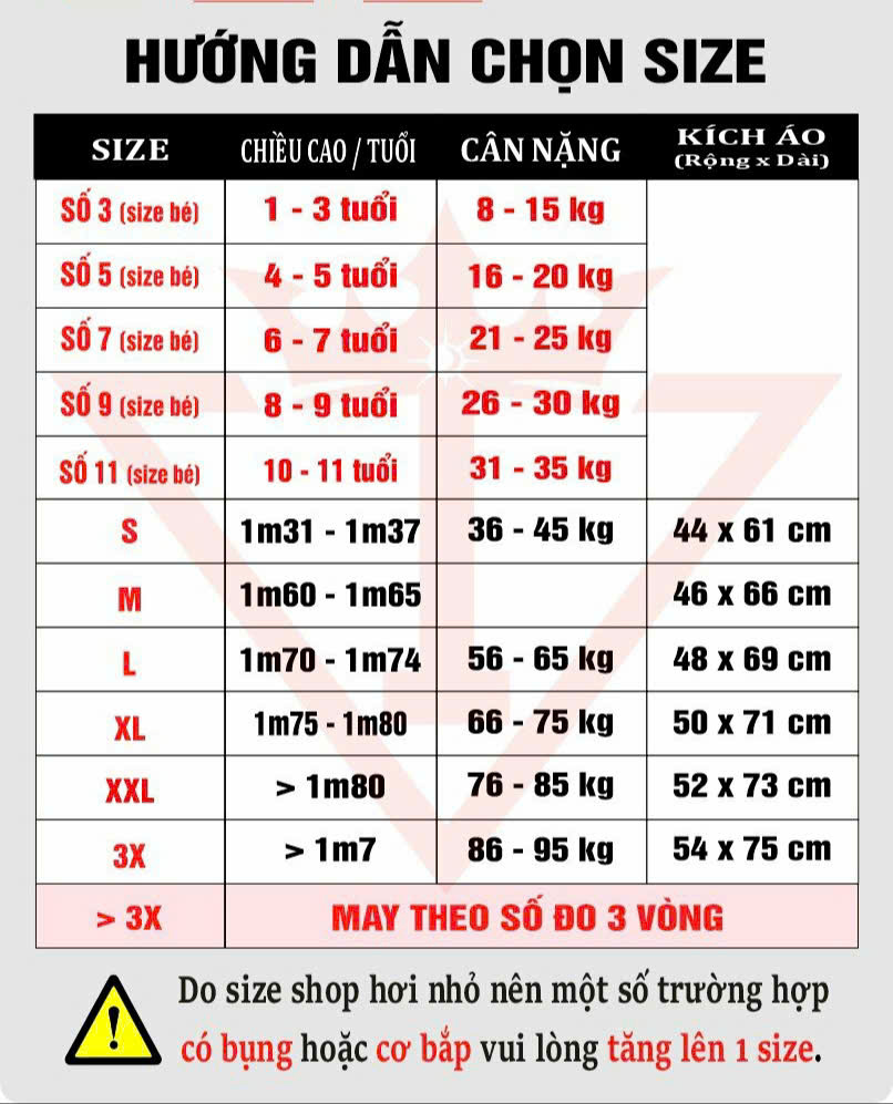 (Vui lòng xem kỹ hướng dẫn và chọn đúng size áo, BTC sẽ không hỗ trợ đổi size theo yêu cầu)